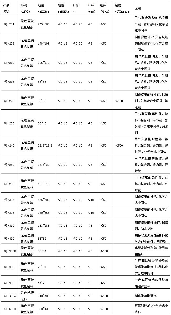 聚醚多元醇GJ-204、206、210、215、220、230、240、260、280、303、305、310、330、330N、360、390、403A、6020