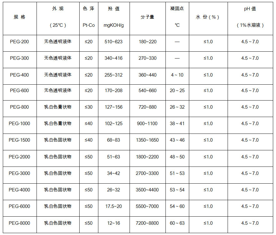 【規(guī)格】PEG200、300、400、600、800、1000、1500、2000、3000、4000、6000 、8000(特殊規(guī)格,可代為研制加工)